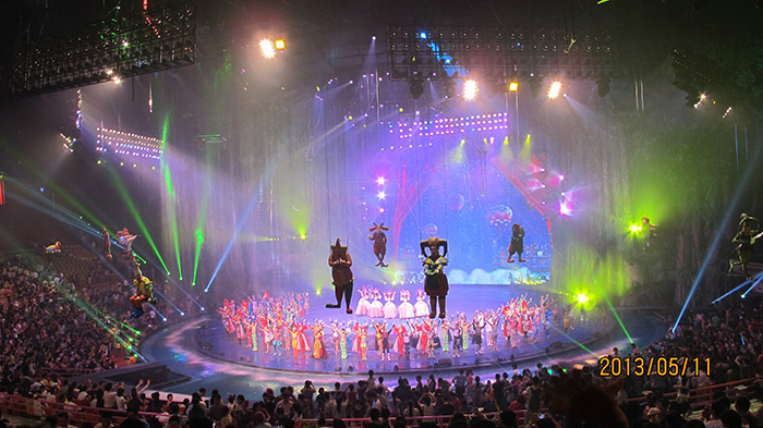 晚上,長隆景區(qū)安排我們觀看了詼諧、驚險、高難度,精彩絕倫的長隆國際大馬戲,長隆國際大馬戲擁有全球首創(chuàng)實景式馬戲舞臺,數(shù)千萬巨資打造極致奢華的尖端舞美科技,和數(shù)億巨資建造的全世界最大的馬戲表演場,能容納近8000名觀眾同時觀看。
