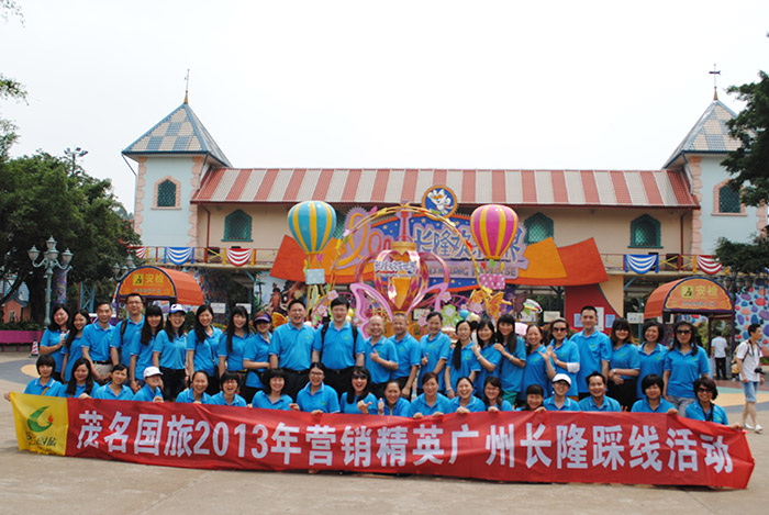 2013年5月11、12日,公司營銷精英一行50多人赴廣州長隆進行了考察踩線活動。公司非常重視此次踩線活動,總經(jīng)理吳卡達、副總經(jīng)理陳國斌、劉穎等公司領導親自帶隊同行。長隆景區(qū)對我們此次踩線活動非常重視,不但全免了五大主題公園的門票,更安排多名工作人員全程陪同講解,讓大家對長隆五大主題公園有全面的了解。