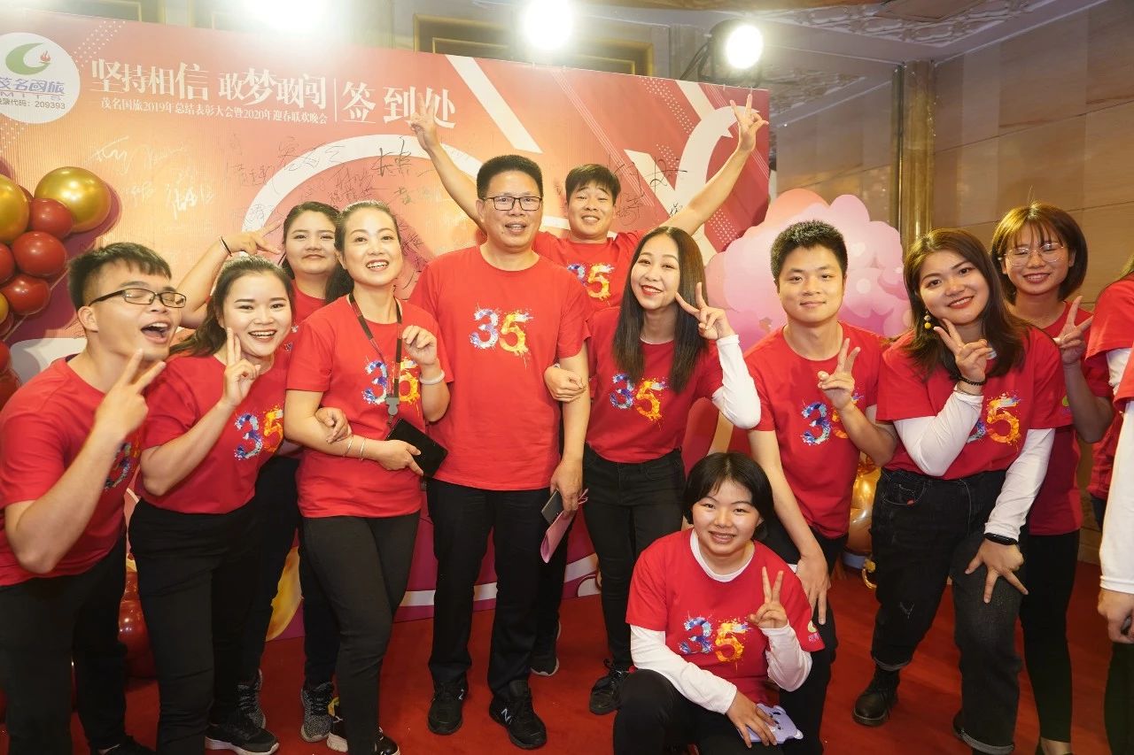 費民龍董事長在新春致辭中表示:今年是茂名國旅成立35周年,在這個充滿紀念意義的時刻感到十分激動?;叵霘v年來的風雨坎坷,至今仍歷歷在目。從起初在沒有任何資金注入的困境中,自力更生、艱苦奮斗,從負債200多萬、員工僅13人、瀕臨倒閉的旅行社,成長為今天粵東西北十三座城市中唯一的百強,員工近500人,連續(xù)多年保持60%以上的市場占有率,在那些無比兇險的轉折關頭,我們國旅家人,以無比強大的信念,無比堅定的堅持,留下了一段又一段的燃情歲月!未來我們還將不斷面臨挑戰(zhàn)和機遇,國旅人務必抓住新的機遇迎接新挑戰(zhàn),以高度的職責感和使命感推進公司持續(xù)發(fā)展,滿懷信心開足馬力奔向更加輝煌的2020!