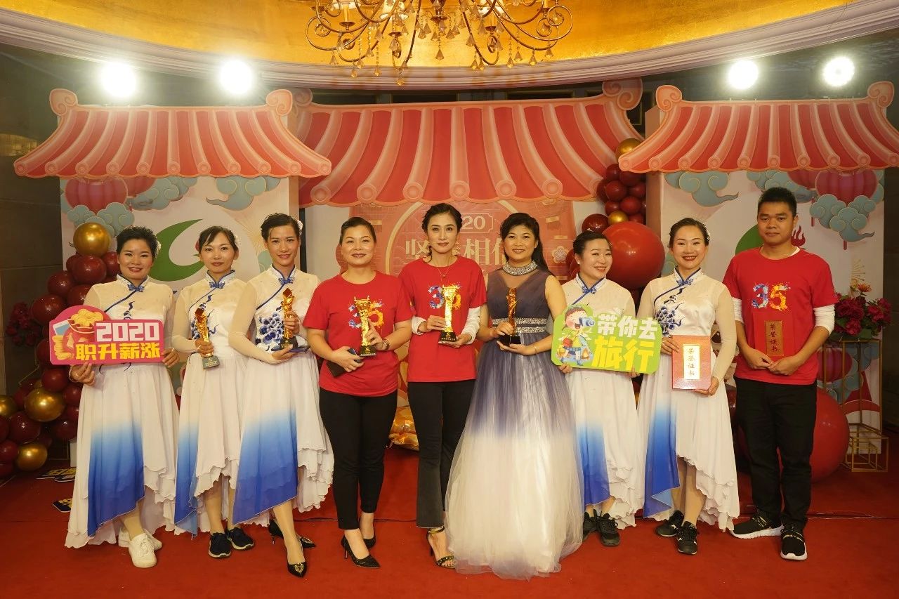 ▲粵西旅游手信城總經理王紫瑤為2019年度“進步最快獎”獲得者:鄭海棠、賴恒珠、吳巧女、鄭小梅、李曉虹頒獎