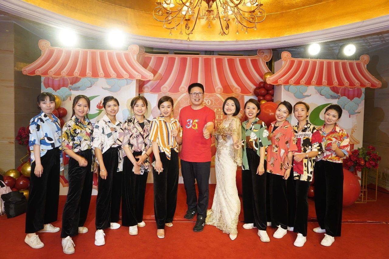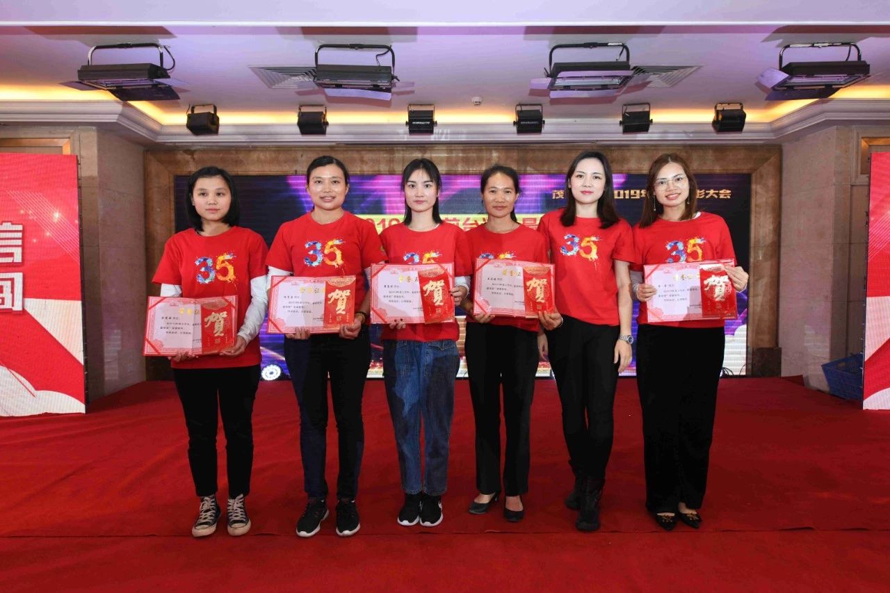 ▲董事長費民龍、執(zhí)行董事李泓希、總經理吳卡達為2019年度“先進工作者”獲得者:潘雪梅、王素娟、張彩云、黃章清、陳天鳳、林桂嬋、李冰晶、張小梨、黃詩瑜、李佳、譚瑩珠、林冬妮、宋美霞、黃小莉、蔡俊茂頒獎