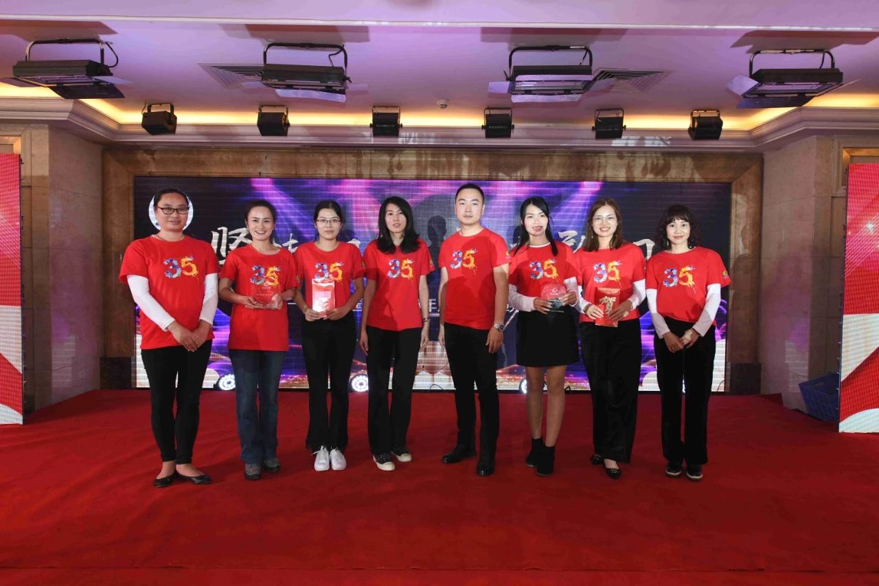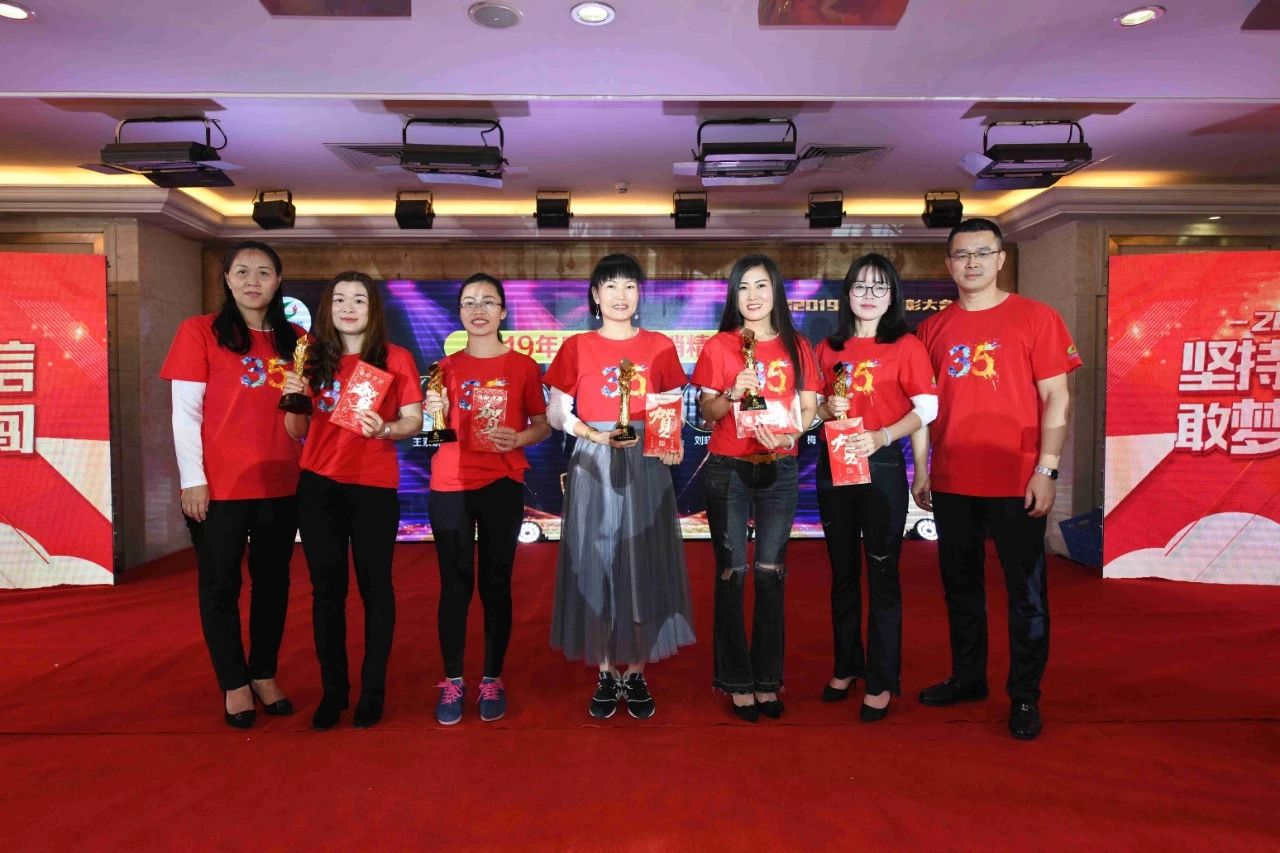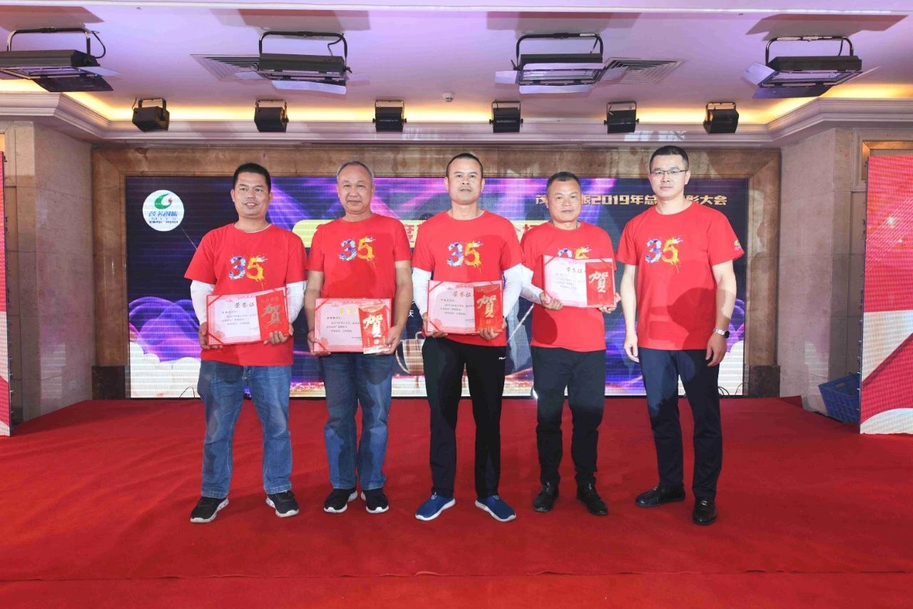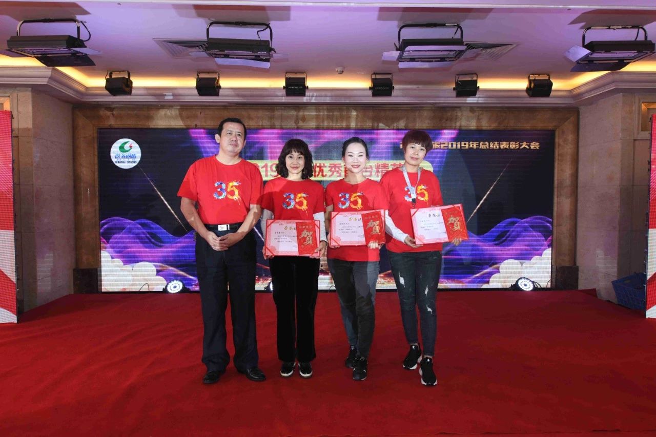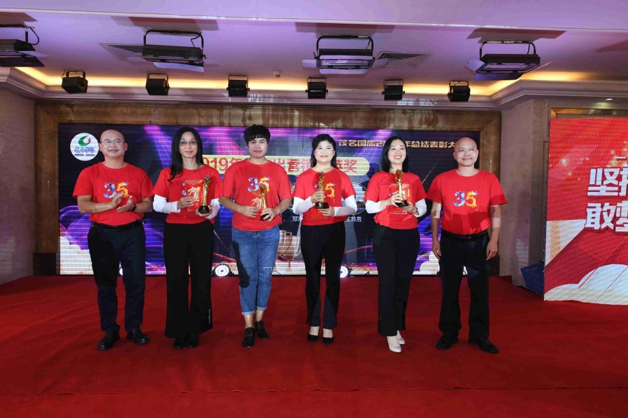 ▲助理總經理董德強、楊柳椿為2019年度“杰出營銷精英獎”獲得者:黃清波、湯秋丹、鄭海棠、王玲燕頒獎