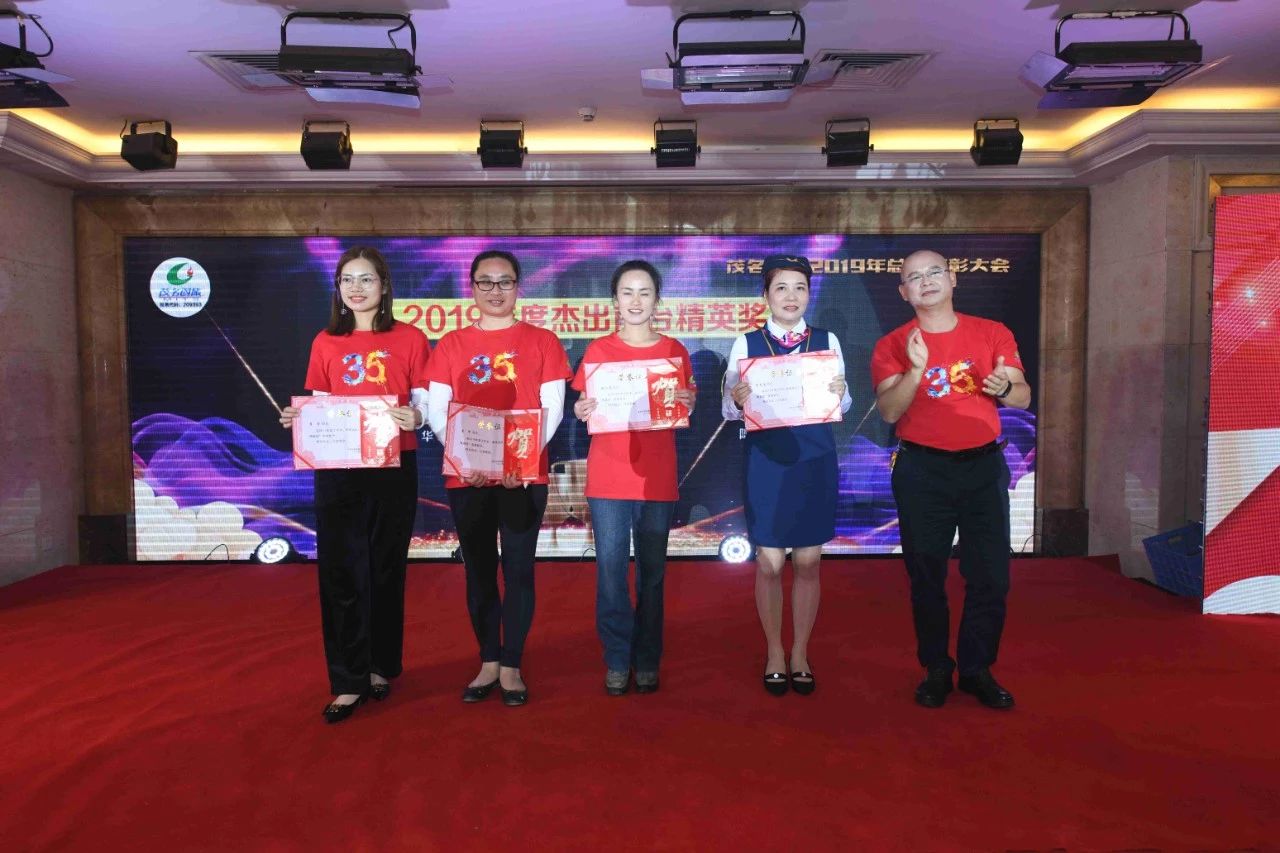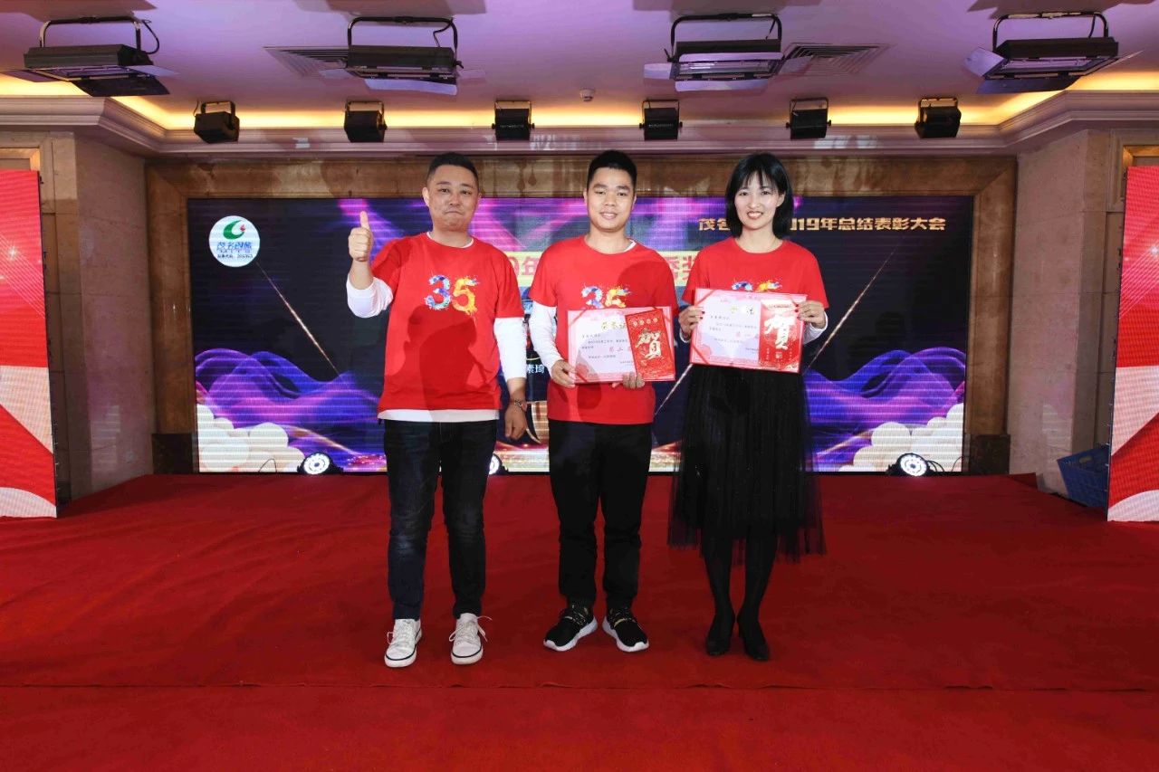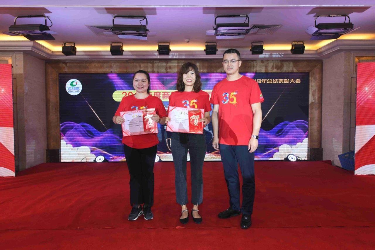 ▲執(zhí)行董事李泓希為2019年度“優(yōu)秀門店獎”獲得者:化州分公司前臺、電白分公司前臺頒獎