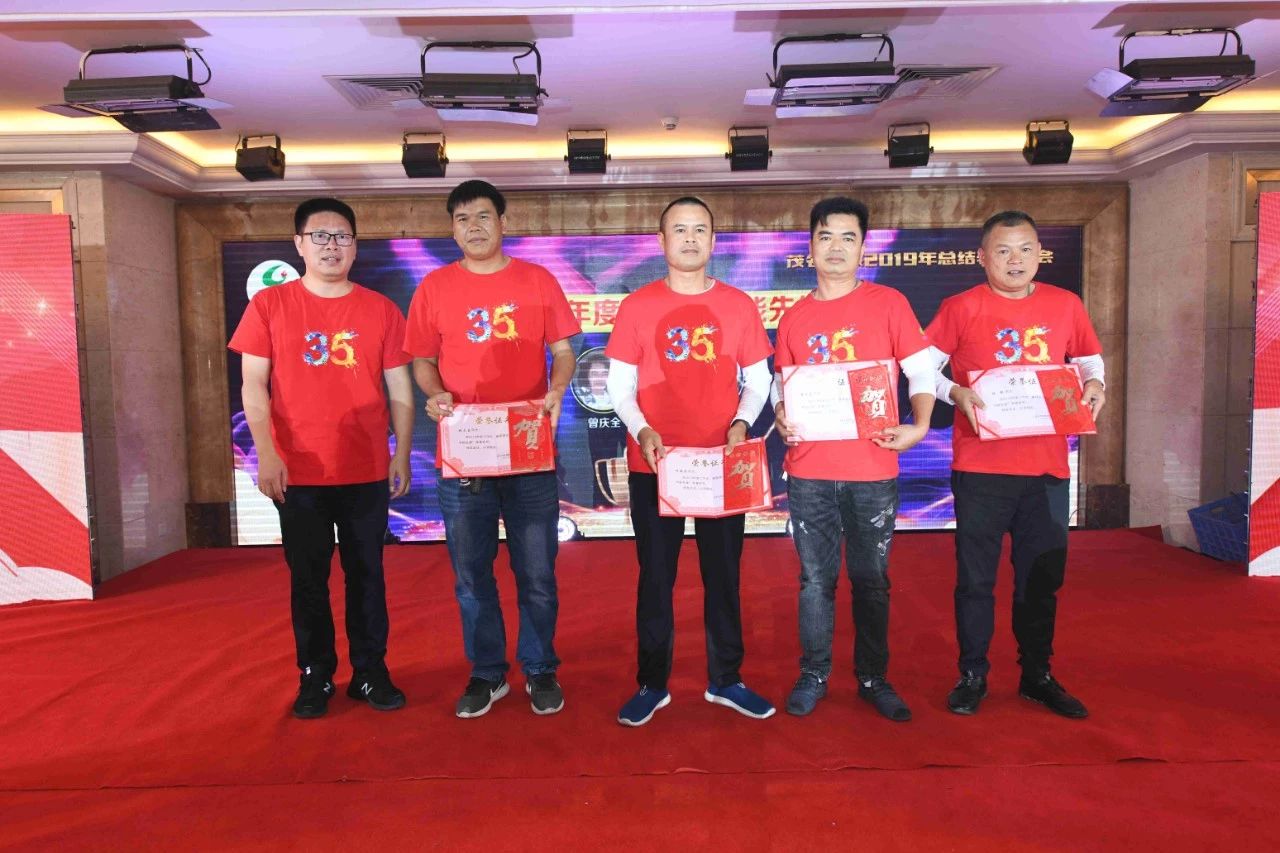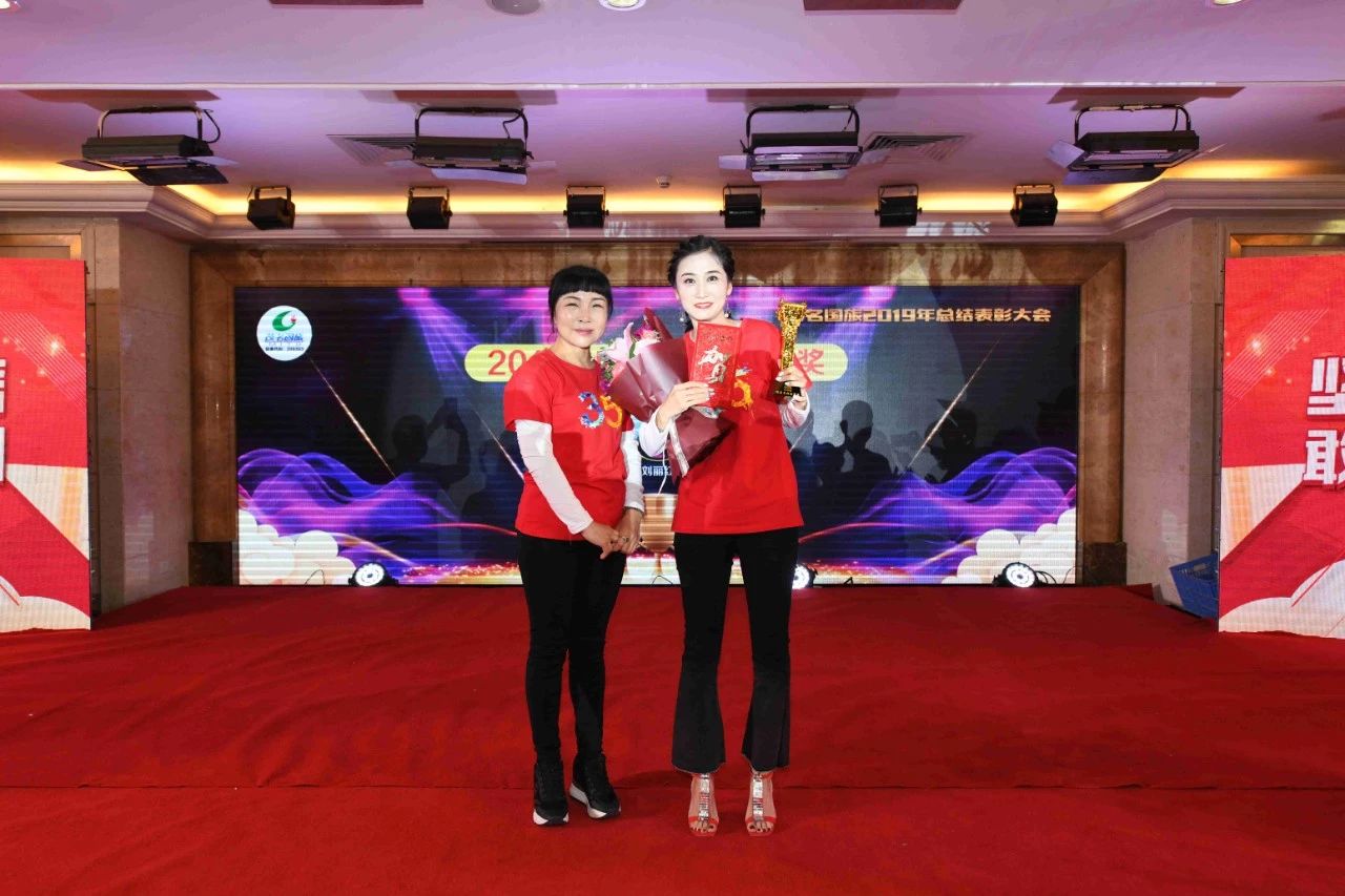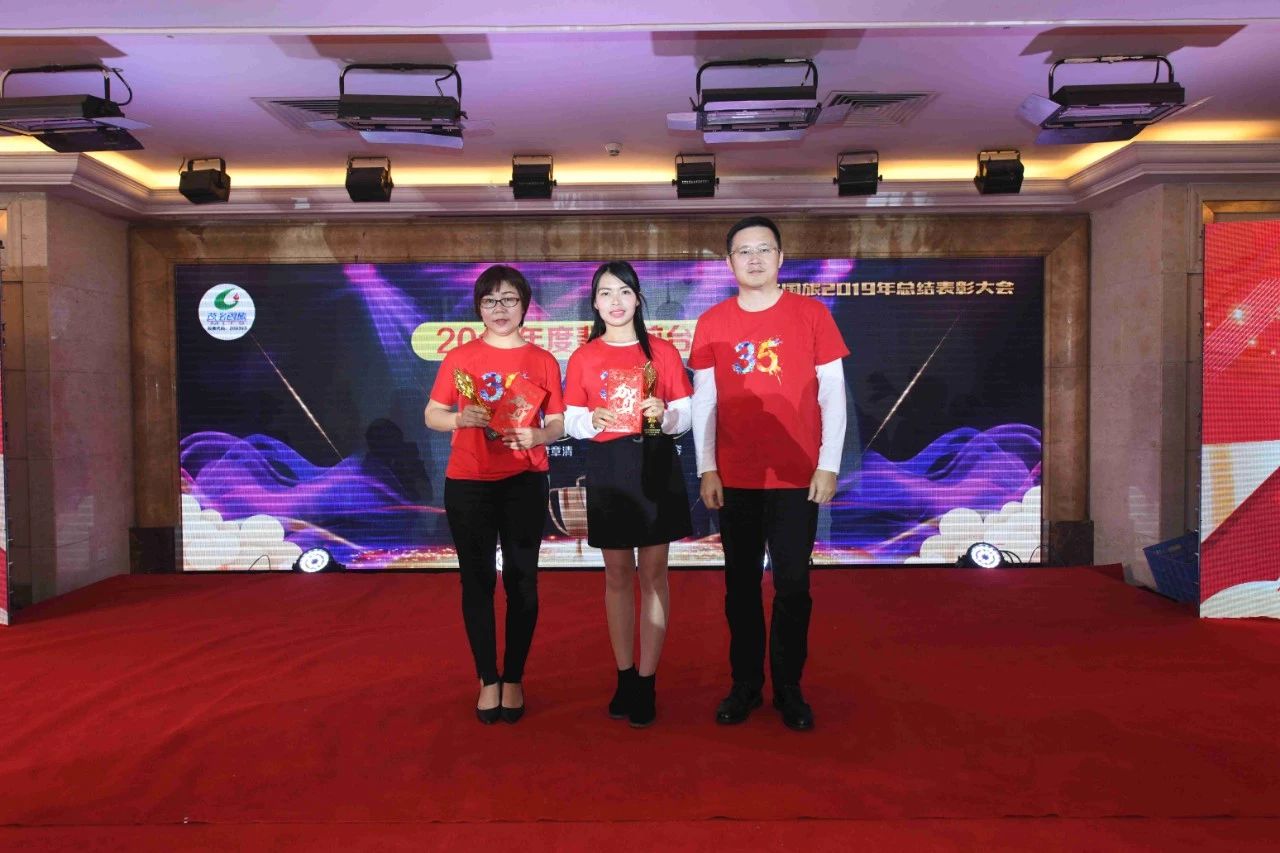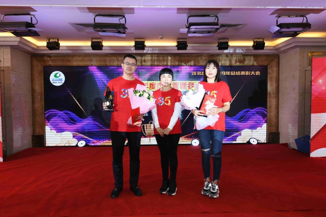 ▲執(zhí)行董事李泓希為2019年度“優(yōu)秀門店獎”獲得者:化州分公司前臺、電白分公司前臺頒獎