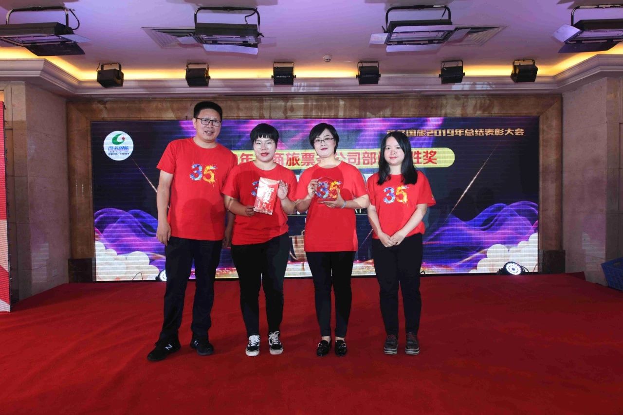 ▲副總經理陳國斌為2019年度商旅票務公司“部門優(yōu)勝獎”獲得者:團體機票部頒獎