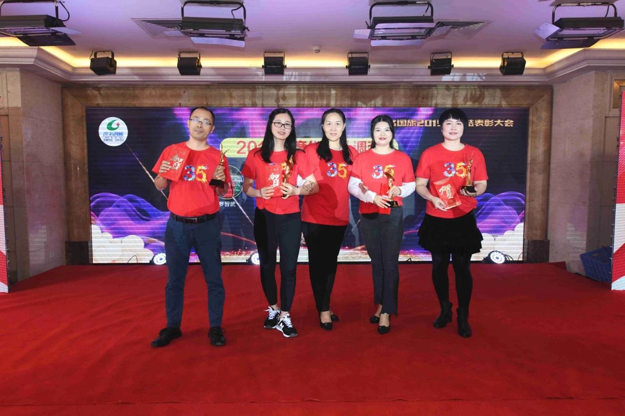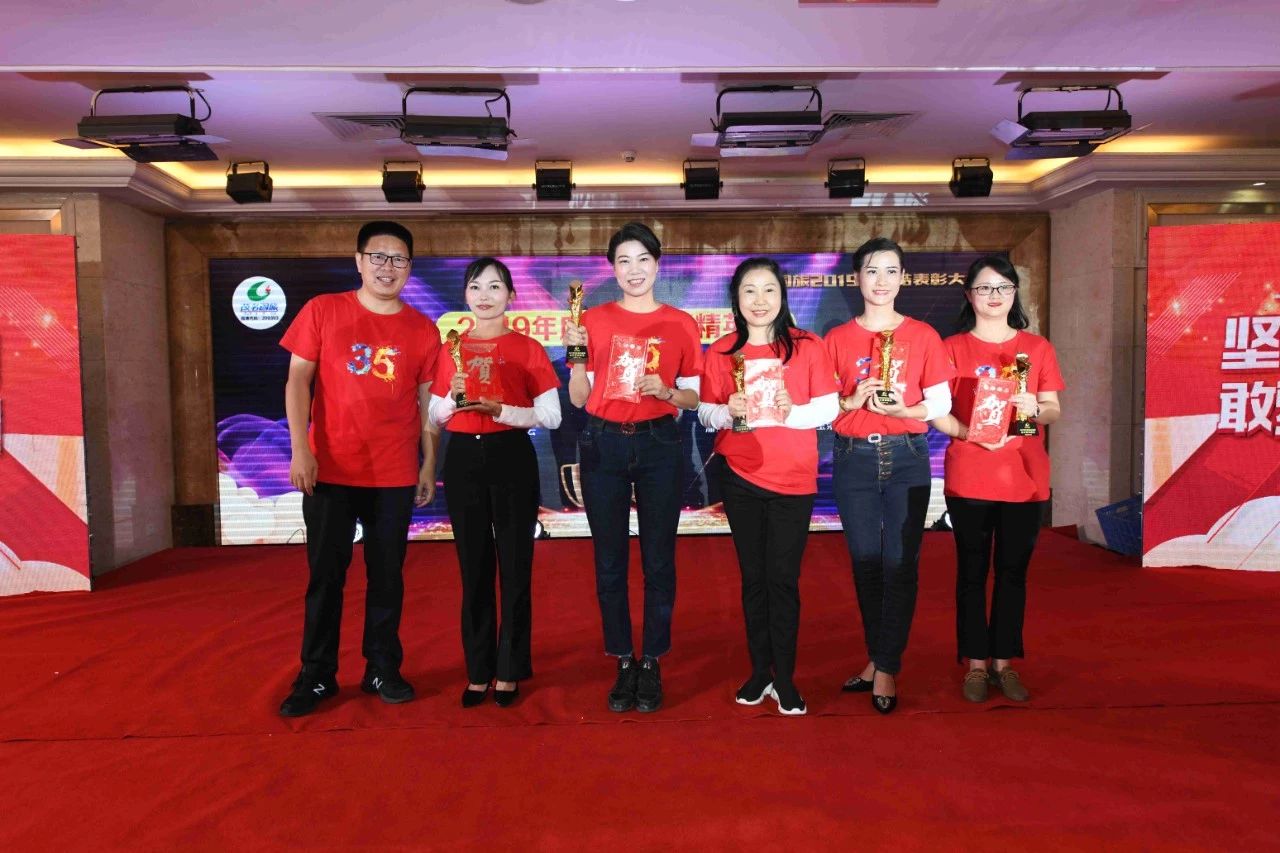 ▲總經理吳卡達為2019年度“翡翠營銷精英獎”獲得者:林曉、祝桂芳、袁翠紅、吳偉琴、劉顏娟頒獎