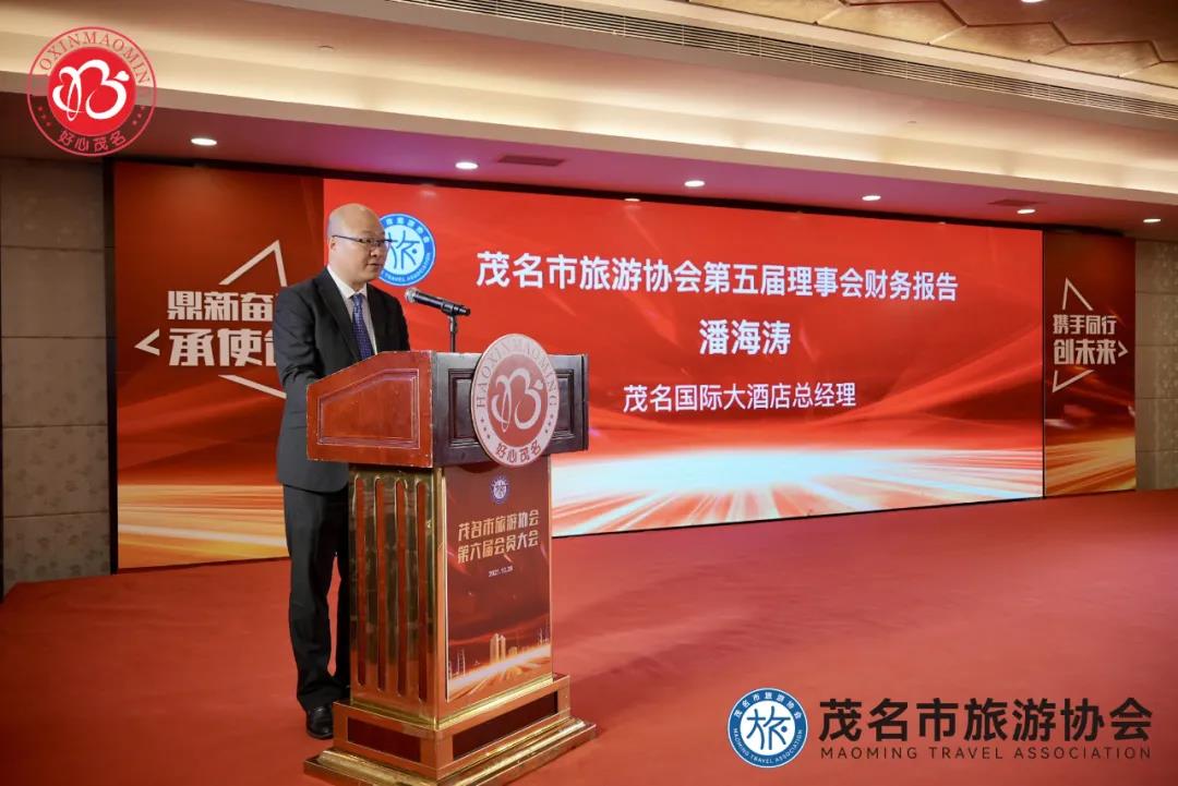 ▲第五屆常務(wù)副會(huì)長(zhǎng)單位代表潘海濤作茂名市旅游協(xié)會(huì)第五屆財(cái)務(wù)報(bào)告