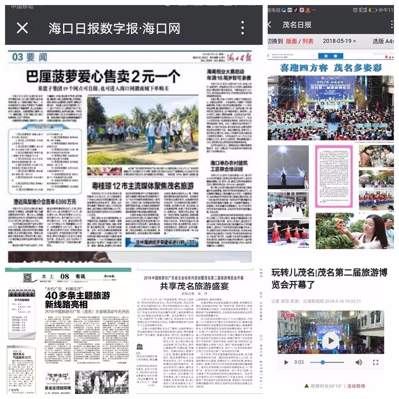 2018年5月18日-20日,由茂名市旅游協(xié)會主辦,茂名日報社、茂名市國旅國際旅行社、茂名市旅游服務(wù)中心承辦,茂名新領(lǐng)粵傳媒有限公司總策劃執(zhí)行的2018年中國旅游日廣東省主會場系列活動暨茂名第二屆旅游博覽會在1959南越文創(chuàng)街成功舉辦,粵西乃至兩廣市民共享旅游文化盛宴,3天近25萬市民共享了茂名史上最大的旅游饕餮盛宴,博覽會商家銷售商品營收達(dá)到2200萬。本次活動涉及宣傳媒體50余家,發(fā)稿量近240余篇,現(xiàn)場直播點擊量118萬人次。作為中國旅游日廣東主會場的主要活動,本次旅博會獲得了廣東省旅游局和茂名市政府的高度評價,受到兩廣旅游業(yè)界的好評!
