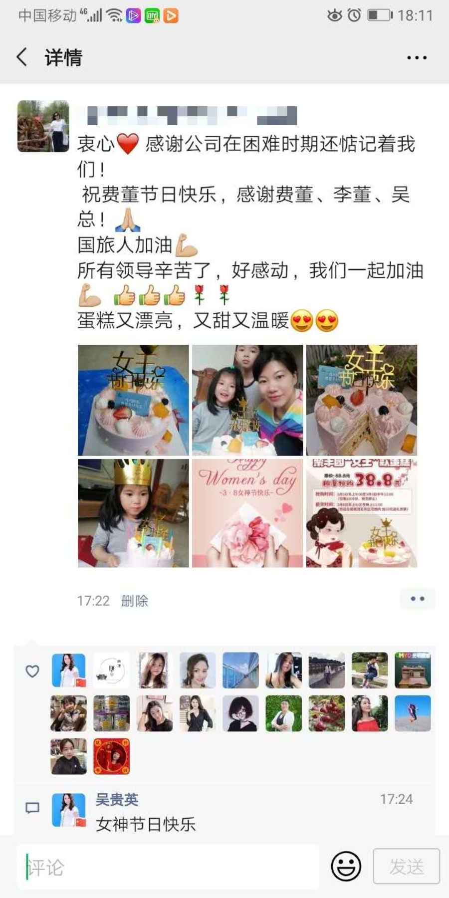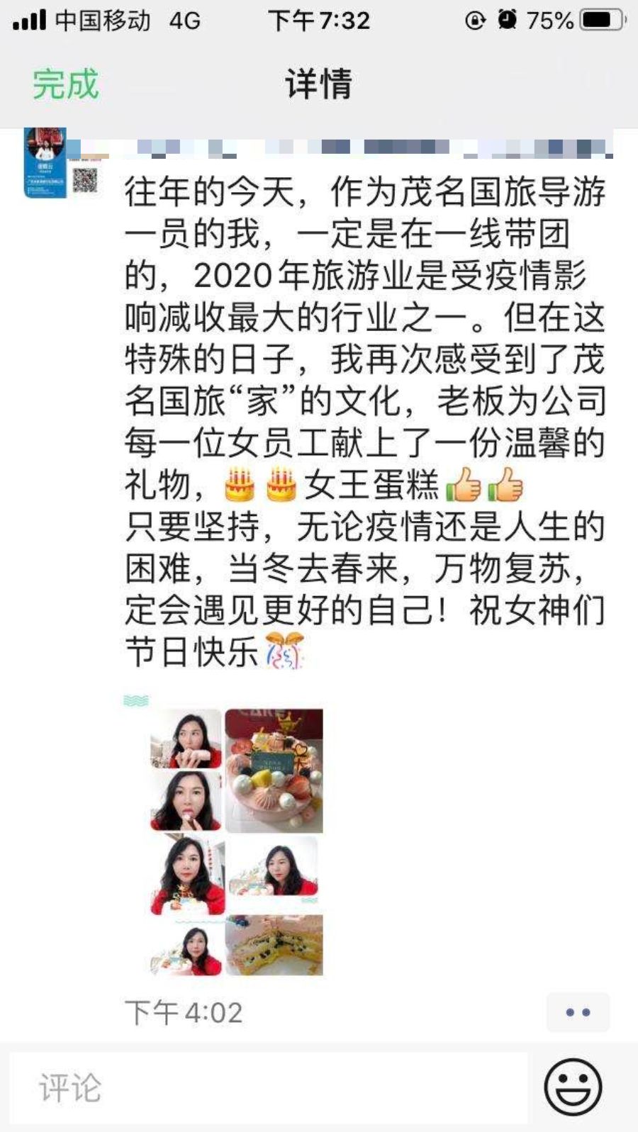在疫情防控的特殊時(shí)期,第110個(gè)“三八”國際勞動?jì)D女節(jié)如期而至。這是一個(gè)大家在疫情期間渡過的女神節(jié),既是無比特殊又久而彌堅(jiān)的一份情誼,茂名國旅在無比艱難時(shí)期,依然期望與大家共賀這個(gè)美好節(jié)日,正是由于眾多國旅家人的不舍不棄,才有了茂名國旅的基業(yè)長青,為感恩有你們!國旅特別預(yù)定三八女神蛋糕送至每位國旅女神,最好的祝福送給最好的你們!