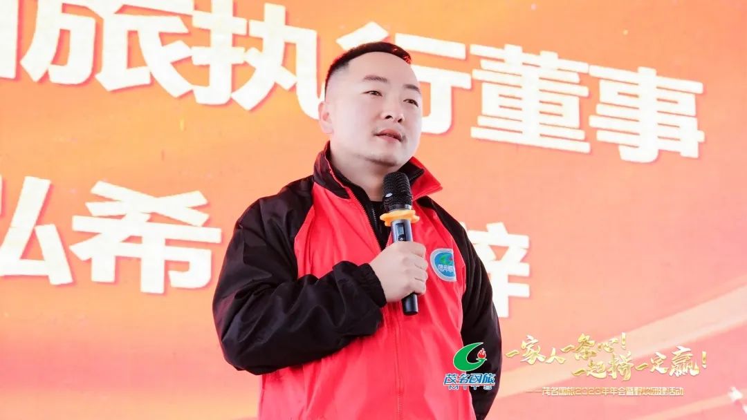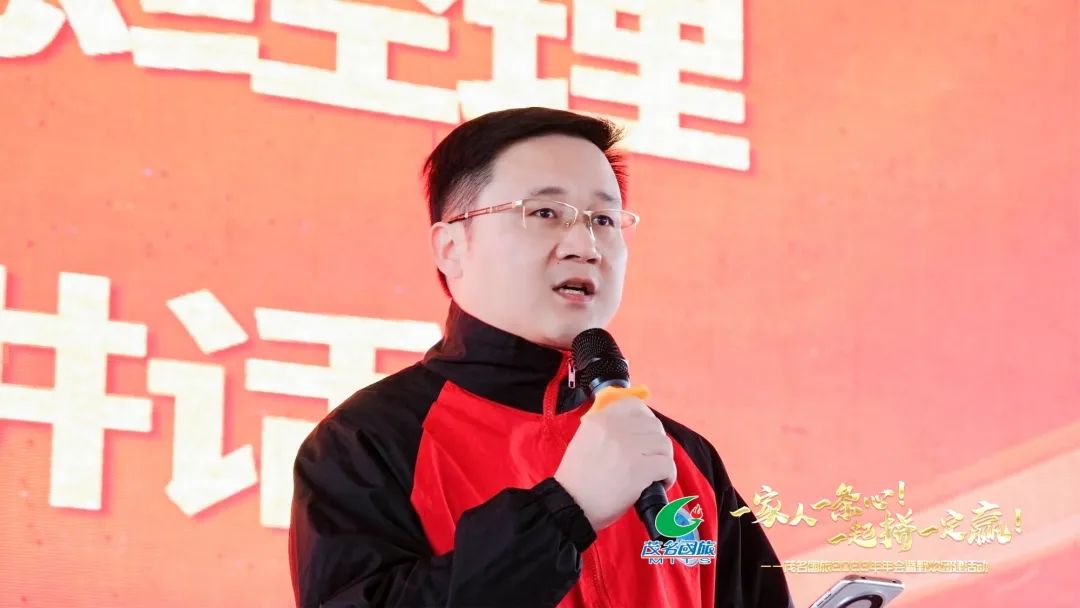 年會上,茂名國旅董事長費民龍慷慨激昂的致辭激起了全體國旅人的熱情。