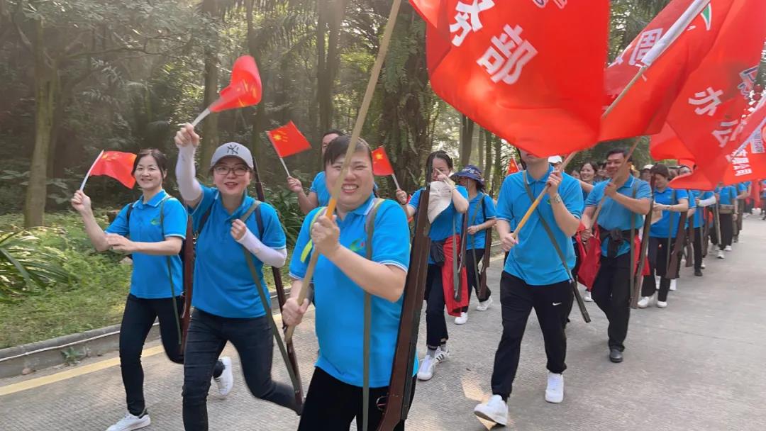期間國旅人還分為了好幾個(gè)方陣列隊(duì)進(jìn)行紅歌比賽,一首首雄赳赳,氣昂昂的紅軍歌曲,讓人聽了激情昂揚(yáng)!