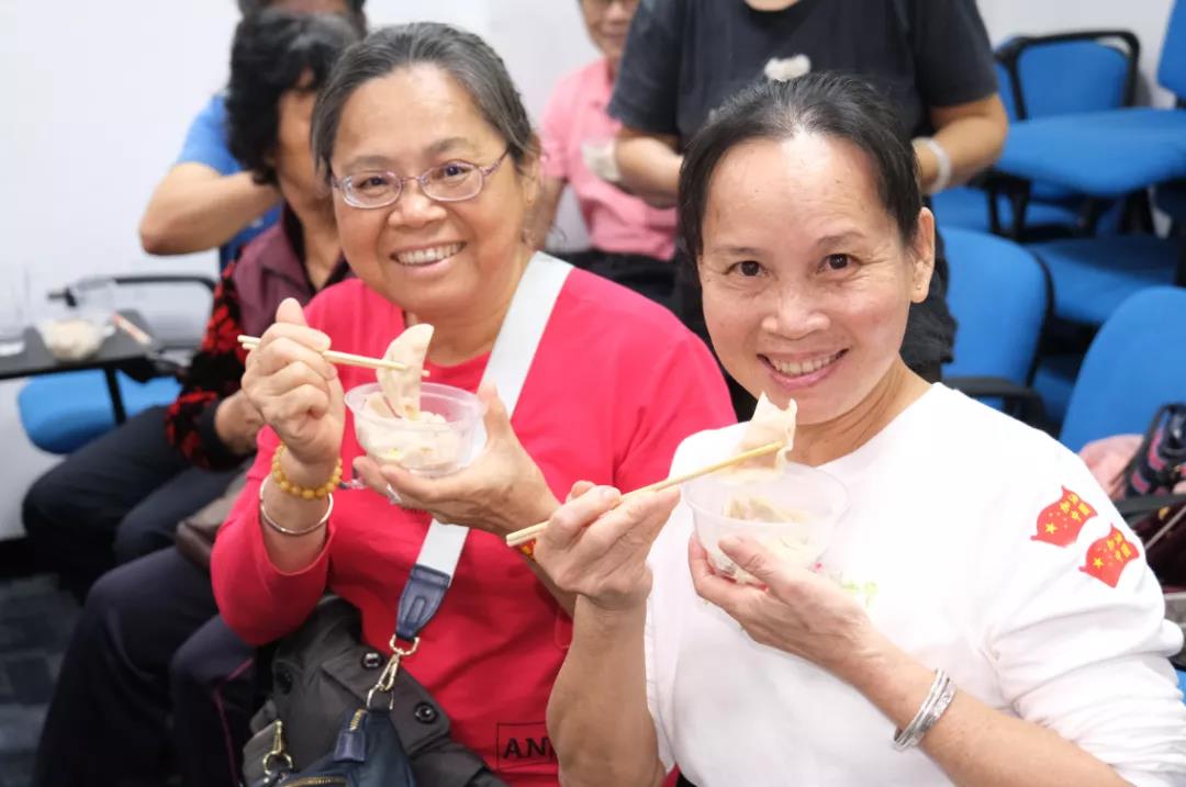 吃自己親手包的餃子就是好吃!大家有說有笑!還不忘在鏡頭前合影!