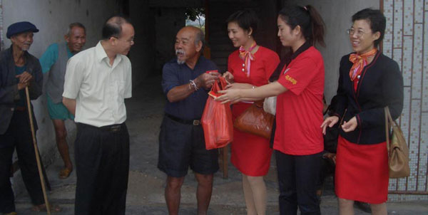 天漸漸涼了,冬天即將來(lái)臨。就在陣陣寒意中,我們走進(jìn)了化州市同慶鎮(zhèn)敬老院。11月1日,我們化州營(yíng)業(yè)部的幾位員工在楊柳椿總助的帶領(lǐng)下,滿栽著公司費(fèi)總、吳總等領(lǐng)導(dǎo)的關(guān)切之情,來(lái)到這里慰問(wèn)孤寡老人,獻(xiàn)上茂名國(guó)旅人的一份愛(ài)心。