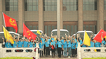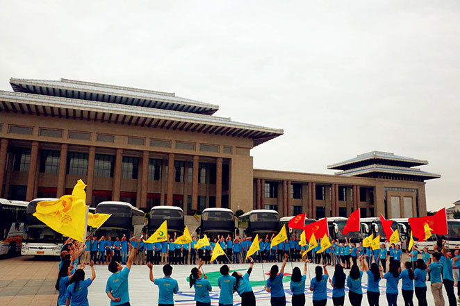 “哇塞,我們終于有自己的旅游車隊啦,太贊了”,一大群國旅的小伙伴在豪華大巴的走道里歡呼雀躍,簇?fù)碓谠捦睬案叱凹t旗飄飄”,自豪與興奮漫溢了整個車廂!