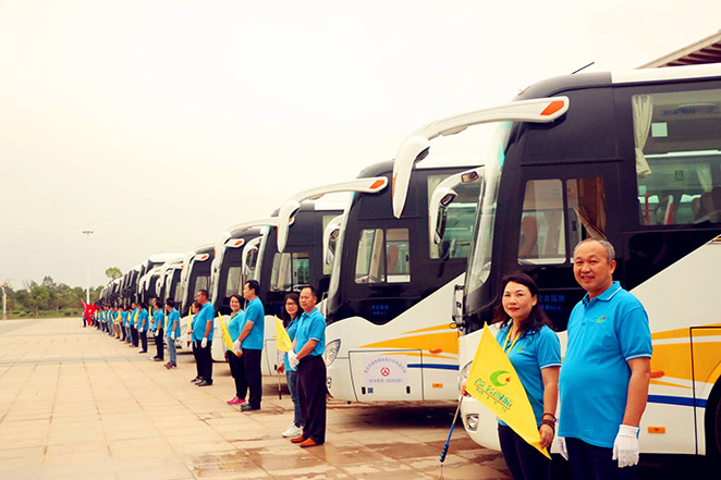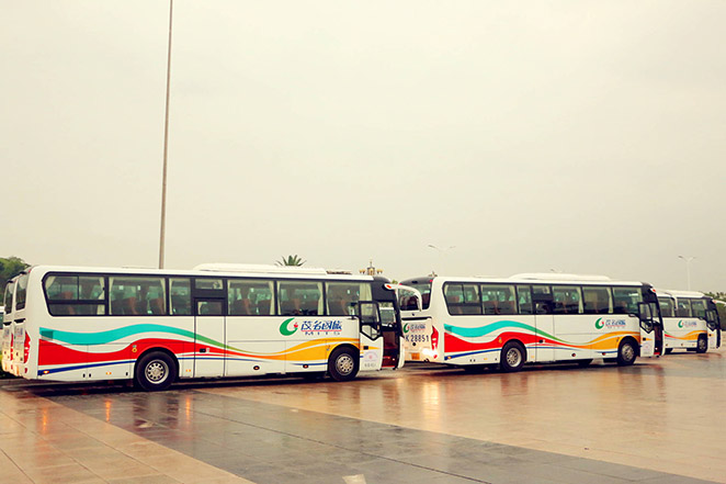 為進(jìn)一步滿足日益增長的旅游需求,改善茂名旅游的接待能力和服務(wù)水準(zhǔn),提升茂名旅游產(chǎn)品與服務(wù)競爭力,在市委、市政府的親自關(guān)懷和交通局、旅游局的大力支持下,經(jīng)過大半年的積極申請和努力籌備,茂名國旅終于組建成立自己的旅游車隊,并秉承高起點的標(biāo)準(zhǔn),斥資近2000萬,購置了30臺全新的宇通大巴。車隊全部采用全新宇通空調(diào)大巴,寬敞的豪華座椅、航空式行李艙、迎賓燈帶、全車四個攝像頭、全車雙車載電視,每個座位均配備USB接口供旅客手機(jī)、平板等電子設(shè)備充電,全車、全程無線WIFI覆蓋,讓游客享受“永在線、不斷電”的旅程。