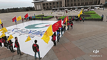 茂名國旅的員工們都超興奮的、不停的向航拍揮手