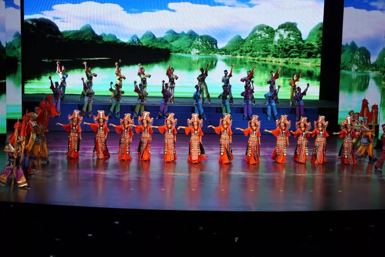 歡聚大美桂林,共襄旅游盛會。10月10日晚,第七屆桂林國際山水文化旅游節(jié)在桂林大劇院盛大開幕。歌如潮,舞翩翩,熱情好客的桂林人民歡歌熱舞迎接前來參加節(jié)日盛會的四海賓朋,展示出桂林國際旅游勝地的迷人魅力?!按航昝C?,舟行碧波上;秋風(fēng)鬧桂香,奇峰水中央……君你若心醉,拋卻那憂傷,把心放在漓江上……”著名女高音歌唱家陳思思帶來女聲獨唱《漓江曲》,把漓江的美演繹得絲絲入扣,漓江的美景配上悠揚的歌聲,令人陶醉。桂林籍著名歌唱家郁鈞劍深情演唱《漓江多情歌》,熟悉的旋律回蕩在演出現(xiàn)場,博得觀眾熱烈掌聲。