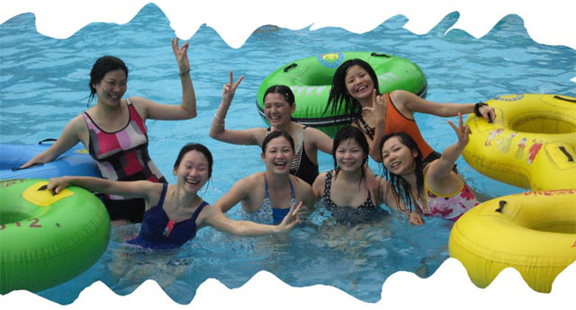 漂流河的末處就是造浪池。它是模擬大海的性能,通過池底鼓風(fēng)機營造出不同狀態(tài)的峰浪,仿佛置身于大海中。我們一直玩到筋疲力盡才肯上岸。