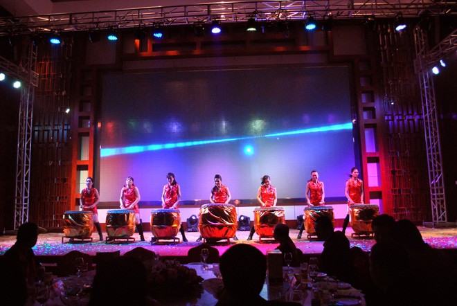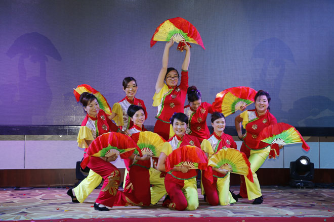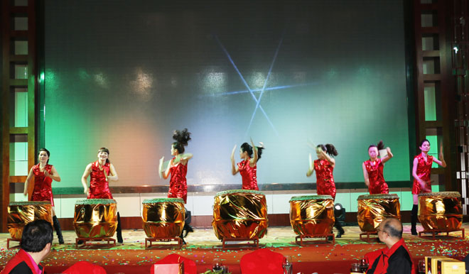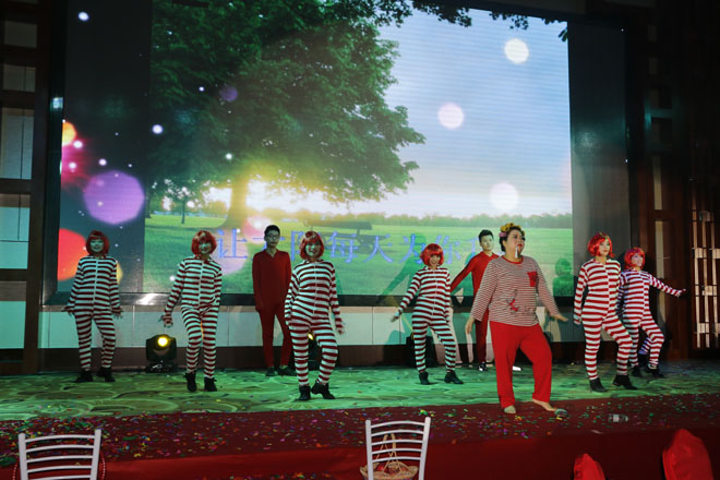 市區(qū)前臺(tái)接待部帶來(lái)的《舞動(dòng)青春》,她們激情澎湃,敲出了青春的飛揚(yáng),為年會(huì)敲響了第一炮。