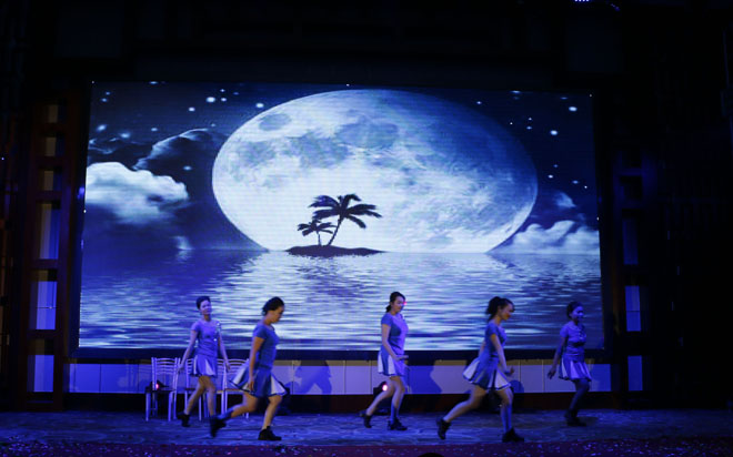 歡笑過(guò)后,優(yōu)美絕倫的《彎彎月光下》讓大家大飽眼球。