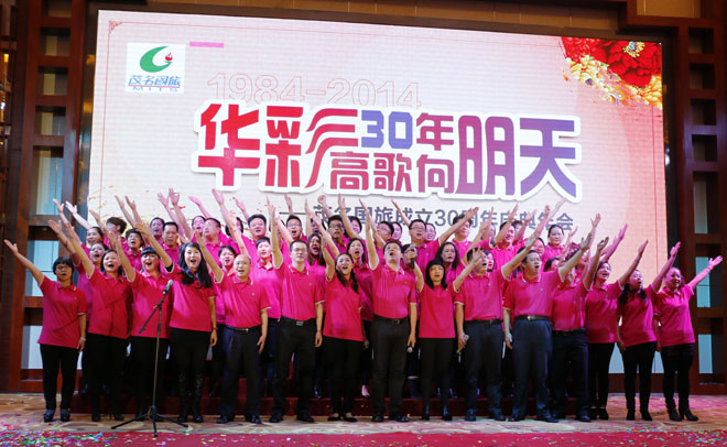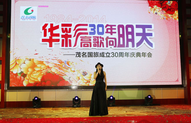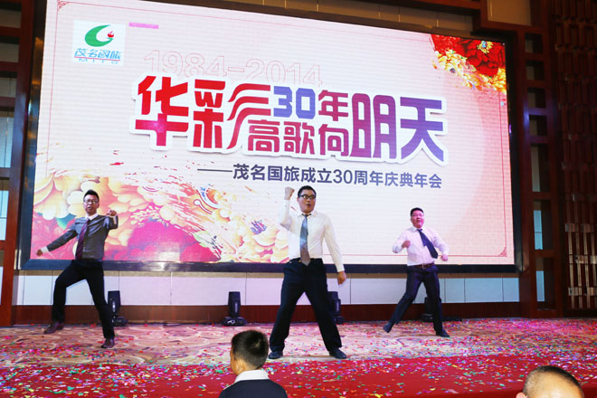 茂名國(guó)旅60多名10周年以上員工合唱《茂名國(guó)旅,你是我的驕傲》,將整個(gè)晚會(huì)推向高潮。