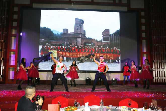 晚會(huì)中,茂名國(guó)旅董事長(zhǎng)費(fèi)明龍女士發(fā)表了新年致辭——2014年對(duì)于茂名國(guó)旅是蓬勃發(fā)展的一年,彰顯了王者風(fēng)范;2015年對(duì)于茂名國(guó)旅是展翅高飛的一年,所向披靡,獨(dú)占鰲頭。