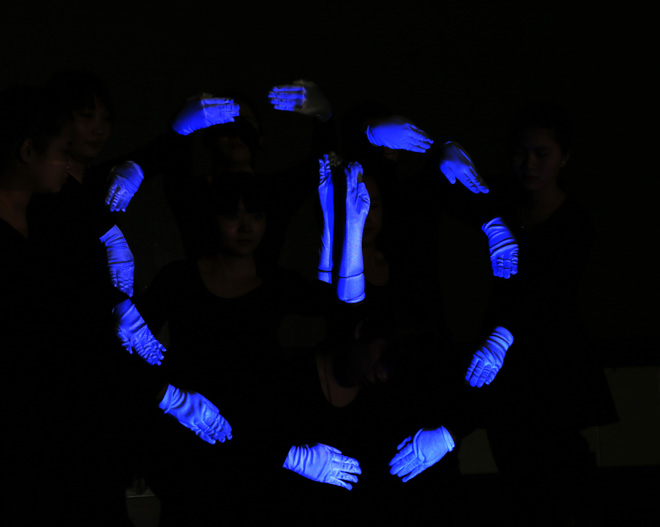 里佳程公司表演了手影舞《風(fēng)雨同舟》,在點(diǎn)點(diǎn)手影中,表現(xiàn)出了國(guó)旅人風(fēng)雨同舟30年的精神。