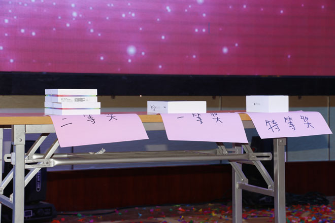 導(dǎo)游部還為大家?guī)?lái)了紅遍網(wǎng)絡(luò)的《卸膊操》,詼諧有趣,笑聲連連。接著,晚會(huì)最令大家期待的抽獎(jiǎng)環(huán)節(jié)開(kāi)始了,大獎(jiǎng)一波接一波,人人有獎(jiǎng),有特等獎(jiǎng)iPhone6,一等獎(jiǎng)iPad Mini,二等獎(jiǎng)華為Mate7,歡樂(lè)獎(jiǎng)300份,幸運(yùn)獎(jiǎng)150份,驚喜價(jià)80份。除此以外,現(xiàn)場(chǎng)許多企業(yè)家紛紛增加獎(jiǎng)品,如樂(lè)天溫泉度假村酒店總統(tǒng)套房、電白御水古溫泉門(mén)票、特呈島酒店、泰國(guó)游、現(xiàn)金獎(jiǎng),獎(jiǎng)品琳瑯滿目,贏得觀眾席的滿堂喝彩。