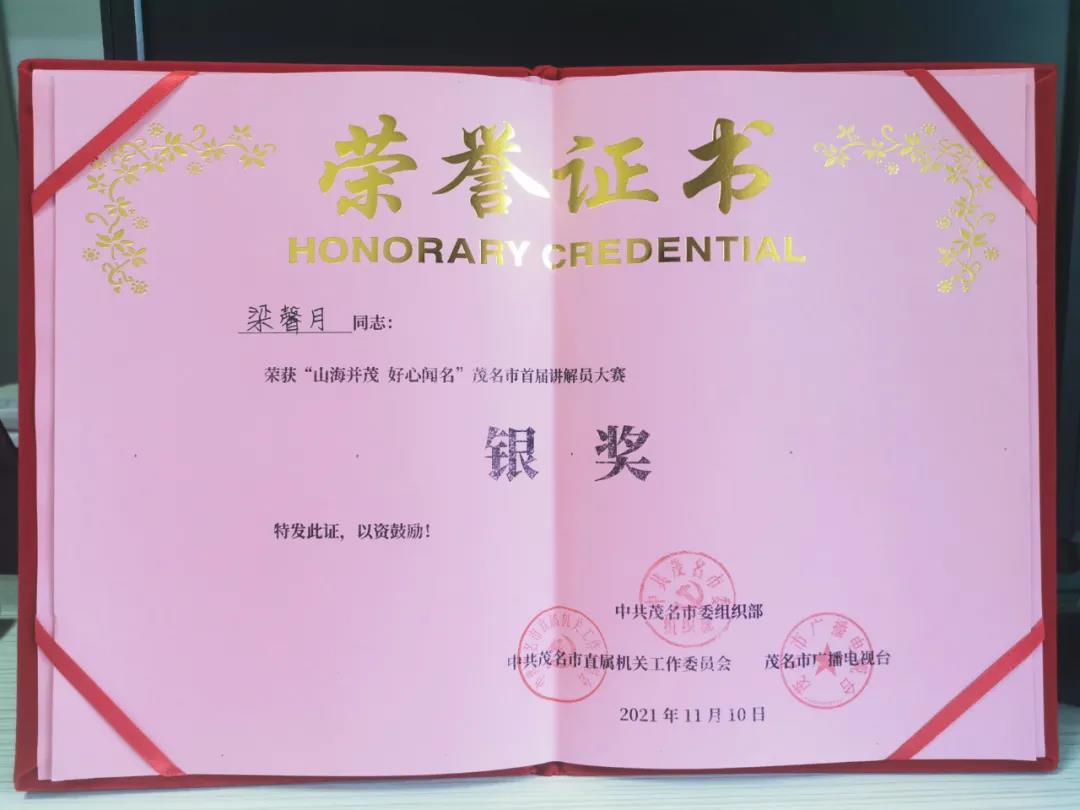 11月10日下午,“山海并茂 好心聞名”茂名市首屆講解員大賽總決賽在市民中心3號會(huì)議廳舉行。我社導(dǎo)游梁馨月在本次比賽中一舉榮獲“銀獎(jiǎng)”、“最佳表現(xiàn)獎(jiǎng)”兩個(gè)獎(jiǎng)項(xiàng)。