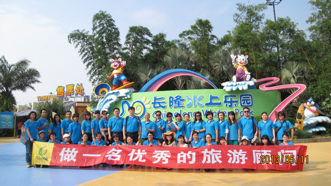 2013年5月11、12日,公司營(yíng)銷(xiāo)精英一行50多人赴廣州長(zhǎng)隆進(jìn)行了考察踩線活動(dòng)。公司非常重視此次踩線活動(dòng),總經(jīng)理吳卡達(dá)、副總經(jīng)理陳國(guó)斌、劉穎等公司領(lǐng)導(dǎo)親自帶隊(duì)同行。長(zhǎng)隆景區(qū)對(duì)我們此次踩線活動(dòng)非常重視,不但全免了五大主題公園的門(mén)票,更安排多名工作人員全程陪同講解,讓大家對(duì)長(zhǎng)隆五大主題公園有全面的了解。