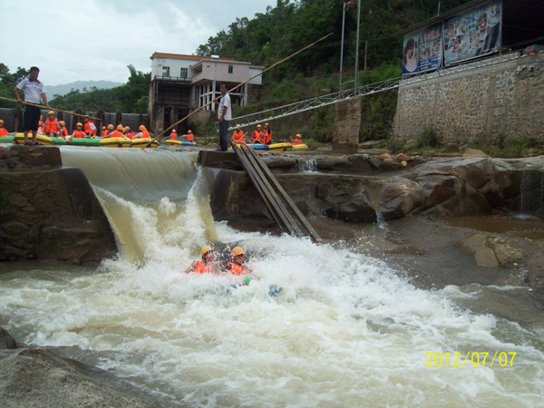 在避暑季即將拉開(kāi)帷幕之際,7月7日,由我社主辦,龍玄峽景區(qū)協(xié)辦的“茂名國(guó)旅2012龍玄峽杯漂流大賽”在風(fēng)光秀麗、景色宜人的信宜龍玄峽舉行。來(lái)自陽(yáng)江及茂名各縣區(qū)的漂流愛(ài)好者共100多人報(bào)名參加本次漂流大賽。隨著發(fā)令槍響,50多對(duì)參賽選手使出渾身解數(shù),一支支皮劃艇在森林幽谷中奮力前行,比技巧、比耐力、拼體力,更考驗(yàn)隊(duì)友的協(xié)作能力,充分展示了隊(duì)員們“團(tuán)結(jié)協(xié)作、奮勇奪先”的精神,在競(jìng)技的同時(shí)盡情感受著“水在山間流,船在河上漂,人在畫(huà)中游”。