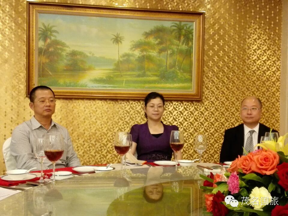 茂名市旅游局黨組書記、局長梁紅健(中),茂名市旅游協(xié)會常務(wù)副會長陳中波(左),茂名市國際大酒店總經(jīng)理潘海濤(右)。