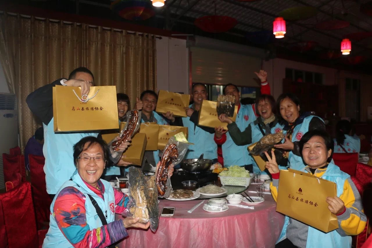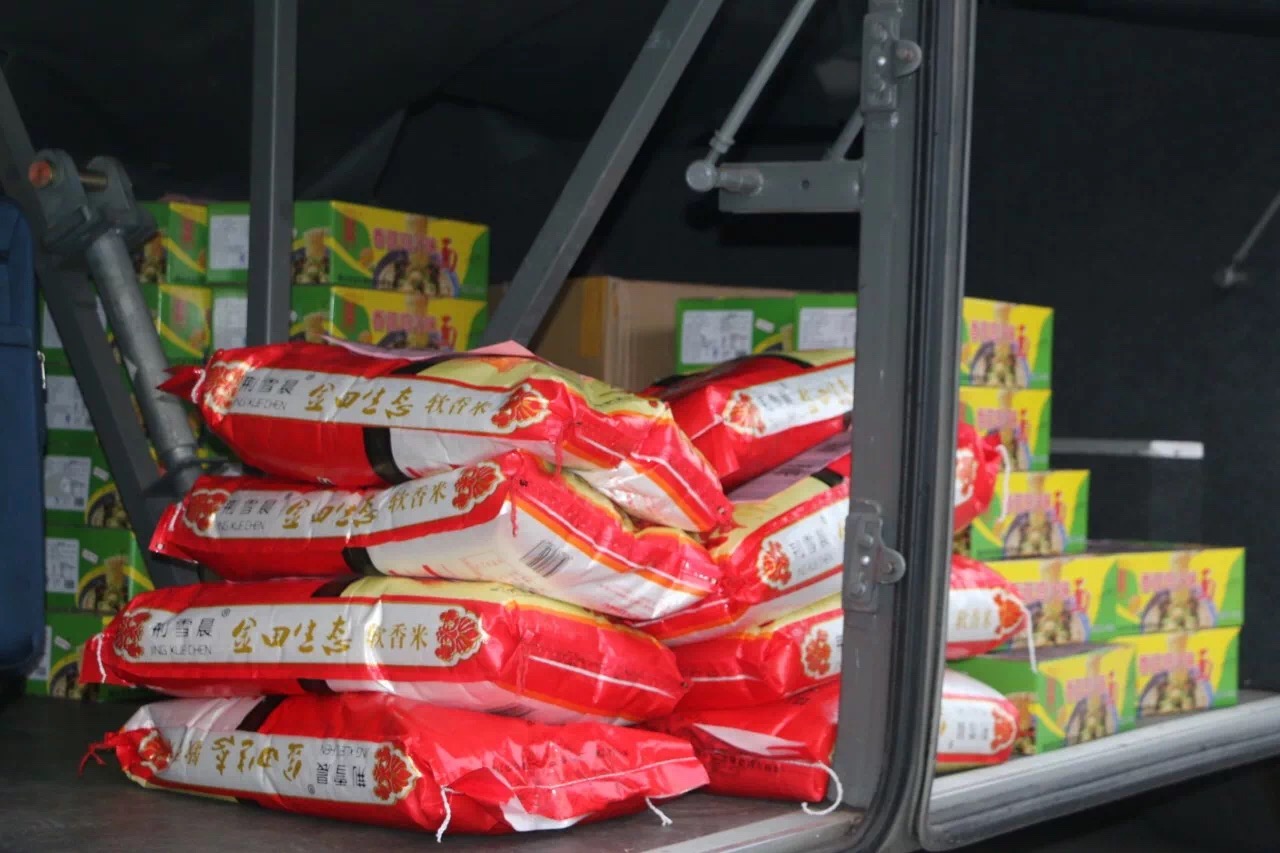 游客們紛紛扛上米和面等社會熱心人士捐贈的物資,向著馬山出發(fā)啦!