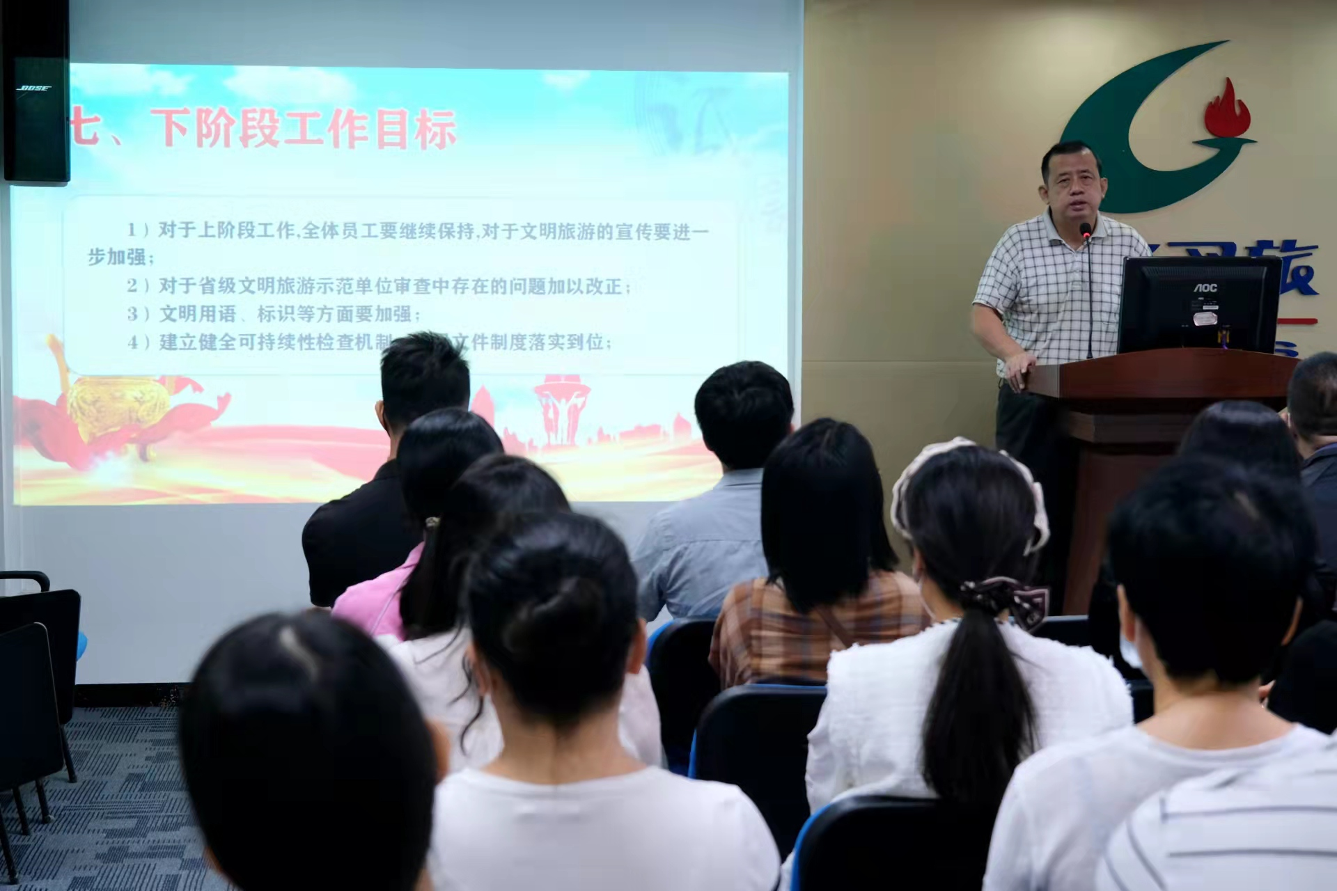 會(huì)上,市文化廣電旅游體育局市場(chǎng)管理科負(fù)責(zé)人吳豪賢同志重點(diǎn)強(qiáng)調(diào)了旅行社推動(dòng)文明旅游的重要性和必要性,并列舉了部分不文明行為,倡導(dǎo)茂名國(guó)旅的前臺(tái)、計(jì)調(diào)、導(dǎo)游等員工要不斷規(guī)范自身言行,合理引導(dǎo)游客文明出游。
