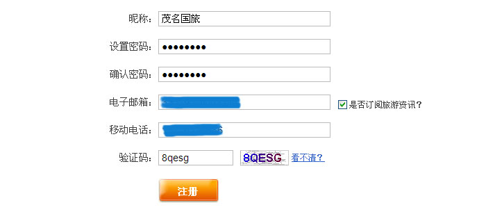 2.填寫昵稱、密碼、電子郵箱、移動(dòng)電話就可以完成注冊。
