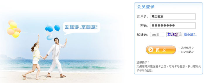 輸入帳號(hào)、密碼、驗(yàn)證碼(鳳凰優(yōu)悅卡會(huì)員直接用卡號(hào)登錄)
