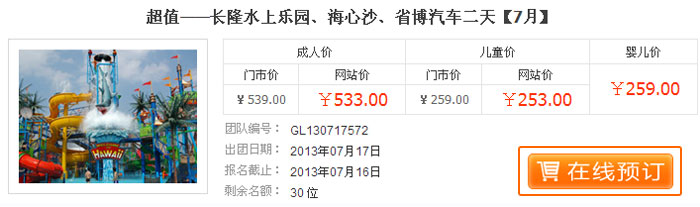 選擇您喜歡的行程點擊【在線預訂】,跳轉到購物車