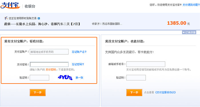 購(gòu)物車填寫好資料,可以選擇支付寶支付方式