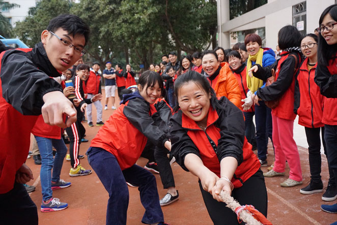 2月16日下午,茂名國旅在市十五中運(yùn)動(dòng)場(chǎng)隆重舉行了2016“我運(yùn)動(dòng).我健康.我快樂”新年趣味運(yùn)動(dòng)會(huì)。本次運(yùn)動(dòng)會(huì)以放松心情、增進(jìn)感情、鼓舞士氣、營造團(tuán)結(jié)和諧的精神氛圍為宗旨,各比賽項(xiàng)目集趣味性、娛樂性、協(xié)作性和競(jìng)爭(zhēng)性于一身,既是力量的角逐,又是智慧的較量;既是個(gè)人體育競(jìng)技水平的展示,又是對(duì)團(tuán)隊(duì)協(xié)作能力的檢驗(yàn)。所有比賽緊張、激烈而又妙趣橫生。通過活動(dòng),大家進(jìn)一步增強(qiáng)了國旅人團(tuán)結(jié)協(xié)作的意識(shí),充分展現(xiàn)了國旅人勇于拼搏、奮發(fā)向上的精神風(fēng)貌!