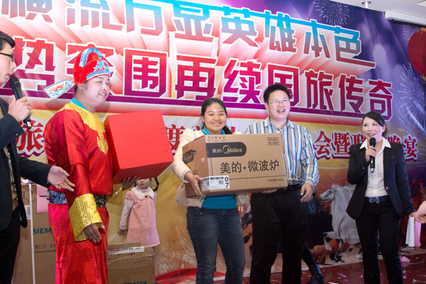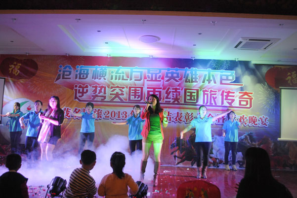 會(huì)上,公司對(duì)2013年度先進(jìn)員工進(jìn)行了隆重表彰,并自編自演了豐富多彩的文藝節(jié)目。晚會(huì)節(jié)目精彩紛呈,現(xiàn)場(chǎng)氣氛激情熱烈。鮮明的青春氣息,濃郁的企業(yè)文化,形象地展現(xiàn)著國旅人的風(fēng)采,充分體現(xiàn)了公司員工青春激昂、銳意進(jìn)取的精神面貌。晚會(huì)結(jié)束后,公司全體員工一起共進(jìn)酒宴,宴會(huì)上穿插著豐富多彩的互動(dòng)游戲以及激動(dòng)人心的抽獎(jiǎng)活動(dòng)。整個(gè)年會(huì)在和諧、溫馨的氣氛中圓滿結(jié)束。