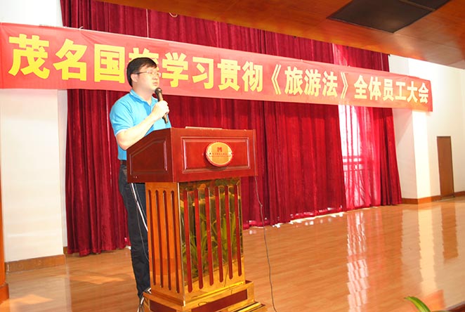 吳卡達(dá)總經(jīng)理在大會上作了重要講話。他說,為了迎接《旅游法》的到來,茂名國旅已經(jīng)提前做好了經(jīng)營管理的有效接軌,在新法實施前就全面推出了無小費、無購物、無自費的“三無”產(chǎn)品,其中包括純玩品質(zhì)團(tuán)、主題旅游團(tuán)等,全程不進(jìn)任何指定購物店,市場反應(yīng)強烈。如暑期熱賣的“長江三峽五星游輪純玩團(tuán)”,產(chǎn)品兼顧了深度觀光和休閑度假的市場需求,雖然價格達(dá)3000多元,卻深受注重旅游品質(zhì)的游客追捧,供不應(yīng)求,一再臨時加團(tuán)?!堵糜畏ā仿涞?,從本質(zhì)上講,我們旅行社應(yīng)該更尊重旅游者的權(quán)益,更嚴(yán)謹(jǐn)?shù)卣下糜钨Y源,更規(guī)范地提供旅游服務(wù),為游客帶來更高品質(zhì)的旅行體驗,這將是我們茂名國旅今后努力的方向。