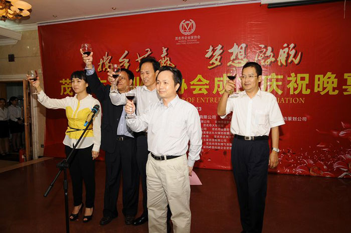 新當選的會長、執(zhí)行會長在茂名市企業(yè)家協(xié)會成立慶祝晚宴上舉杯答謝領(lǐng)導(dǎo)和嘉賓