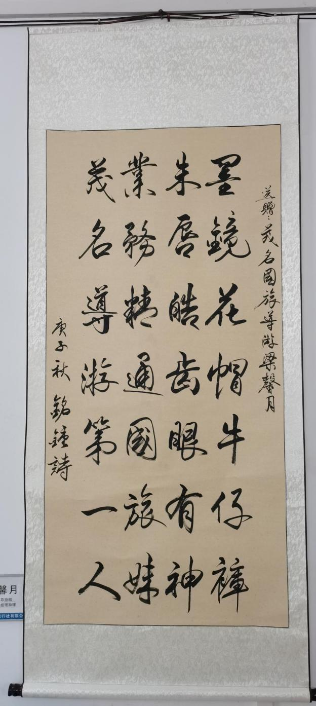 ▲10月,茂名國旅金牌導游梁馨月獲團友贈送字畫。
