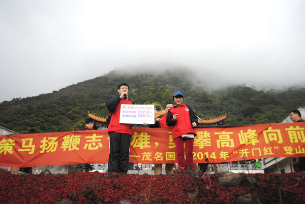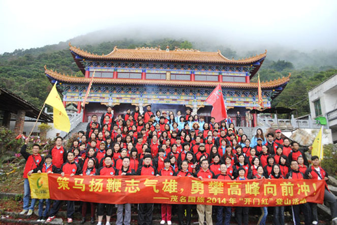 在剛剛過去的2013年里,我社激流勇進,逆勢突圍,連續(xù)三年實現(xiàn)旅游營收超億元,組織接待人數(shù)超20萬人次,繼續(xù)保持行業(yè)的龍頭地位。2014年新年伊始,為弘揚國旅人新時期精神,激勵全體國旅人再接再勵,創(chuàng)造新的輝煌,1月8日(大年初九),我社在秀麗的南粵浮山勝景——高州浮山嶺舉行了“開門紅”登山活動。