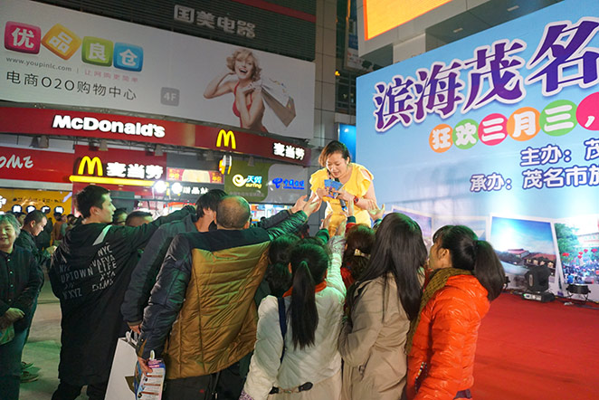 這次推介會,恰逢廣西特有的“三月三”小長假即將到來,茂名國旅與浪漫海岸、御水古溫泉、放雞島海洋度假公園、森林公園等四大王牌景區(qū)強強聯(lián)手,結(jié)合推介會策劃“狂歡三月三,萬人游茂名”了活動,包下了80臺大巴和1趟旅游專列,為廣西游客量身定造茂名旅游精品線路,這些產(chǎn)品價格實惠、組合豐富、活動精彩,除了受到當?shù)芈眯猩绲暮迷u外,也受到了市民游客的青睞。