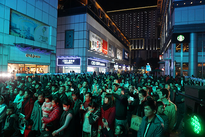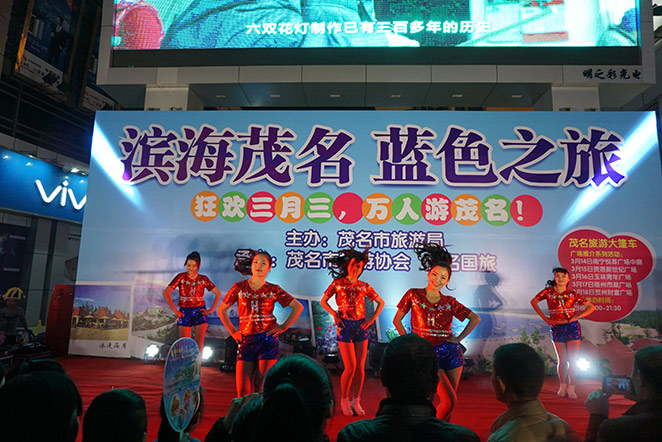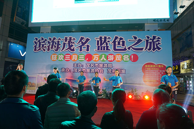 茂名國旅工作人員在戶外促銷活動中表演暖場節(jié)目。