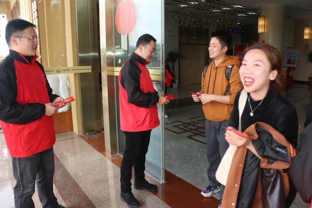 費董、李董、吳總在飯店門口溫馨地派發(fā)開工利是,所有家人財源滾滾!