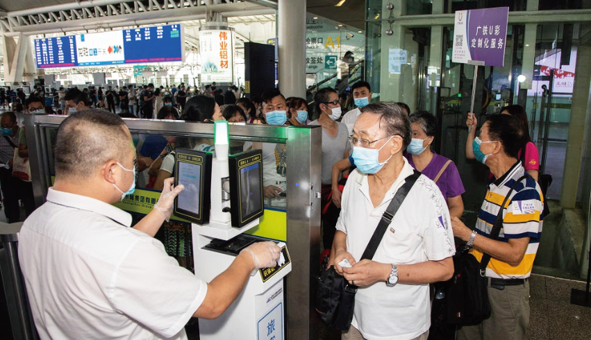 同時(shí),為了讓旅客出行更順暢、更安心,廣州南站還為該定制團(tuán)隊(duì)設(shè)置了專用候車區(qū),安排專人引導(dǎo)旅客測(cè)溫、候車、進(jìn)站、上車,并耐心為他們講解登乘列車注意事項(xiàng),提醒旅客提高個(gè)人安全防范意識(shí),盡最大努力降低疫情傳播風(fēng)險(xiǎn)。
