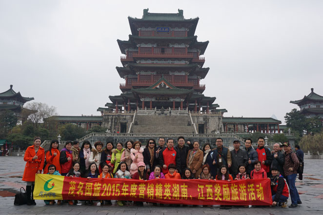 2016年1月1日至6日,茂名國旅2015年度營銷精英獎勵旅游活動隆重舉行,本次活動的目的地是湖南和江西,行程共六天,公司董事長費民龍、執(zhí)行董事李泓希、總經(jīng)理吳卡達等公司領(lǐng)導(dǎo)及營銷精英40多人參加了本次活動。