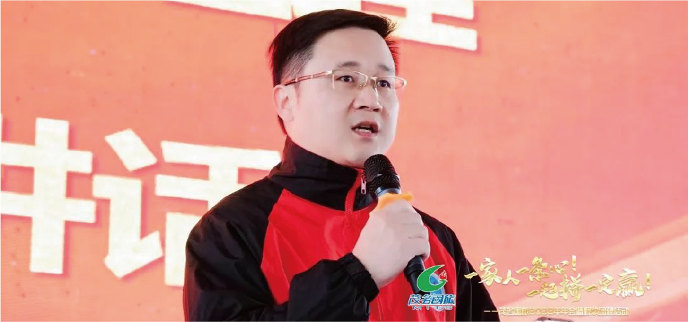 年會上,茂名國旅董事長費民龍慷慨激昂的致辭激起了全體國旅人的熱情。